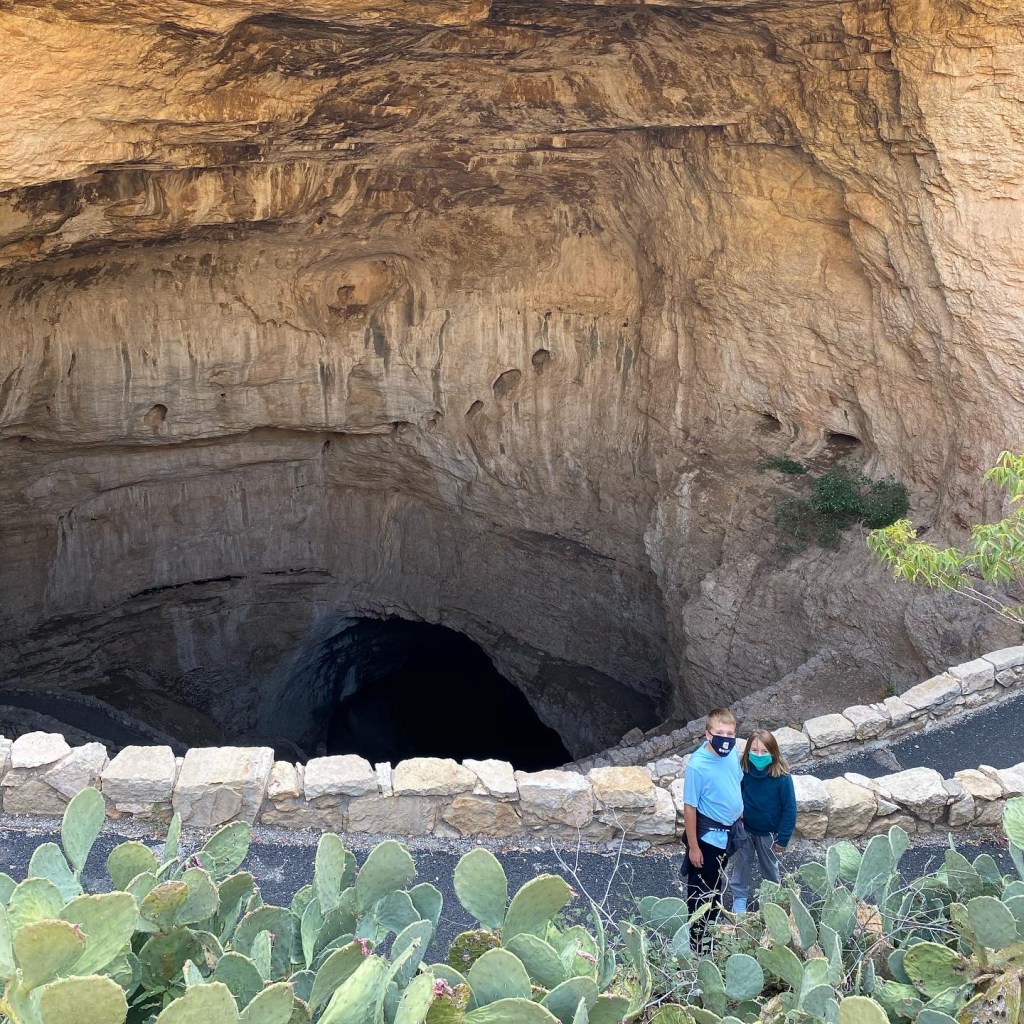 We seem to be getting into a groove with the set up and tear down of our rig, and we made record time in our departure in heading out towards Carlsbad, New Mexico. We were nervous about getting tickets to enter Carlsbad Caverns National Park, as the park service is currently limited visitors to about 10% of the normal capacity each day. On the park website, we learned that tickets to enter have been selling out by about 9:00 am, so when we pulled into the parking lot at 8:33 am I basically tucked + rolled out the door and raced into the visitor center to get in line! Luckily, we made it in time, and were thrilled to be headed down into the gigantic mouth of the cavern before 9:30.